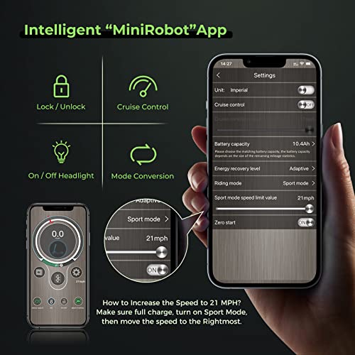 - 【Innovative & Superior Regenerative Battery Technology】- The high capacity battery (36V/10.4AH) supports a max travel range of up to 22 miles under ideal conditions and a top speed of up to 21 mph (the top speed can be set through the APP). The regenerative battery helps recycle energy from riding to provide greater range. Meanwhile, the battery reverse technology offer you convenience to charge your phone with the USB charging port on the handlebars.