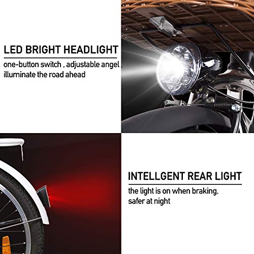 - 【Premium materials】Electric bicycles are made of high-strength carbon steel frames. It has built-in high-quality comfort cushioning and a larger and stronger frame to help you withstand more weight, which is ideal for vacation travel.