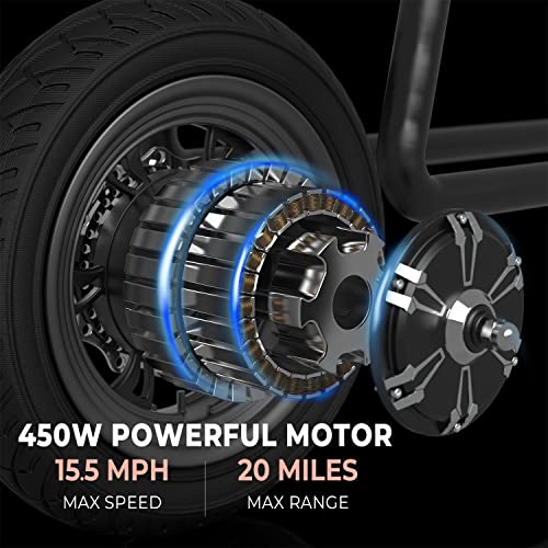 - MOTORIZED SCOOTER: 450W Brushless electric motor scooter with 20-mile range and max speed of 15.5 mph